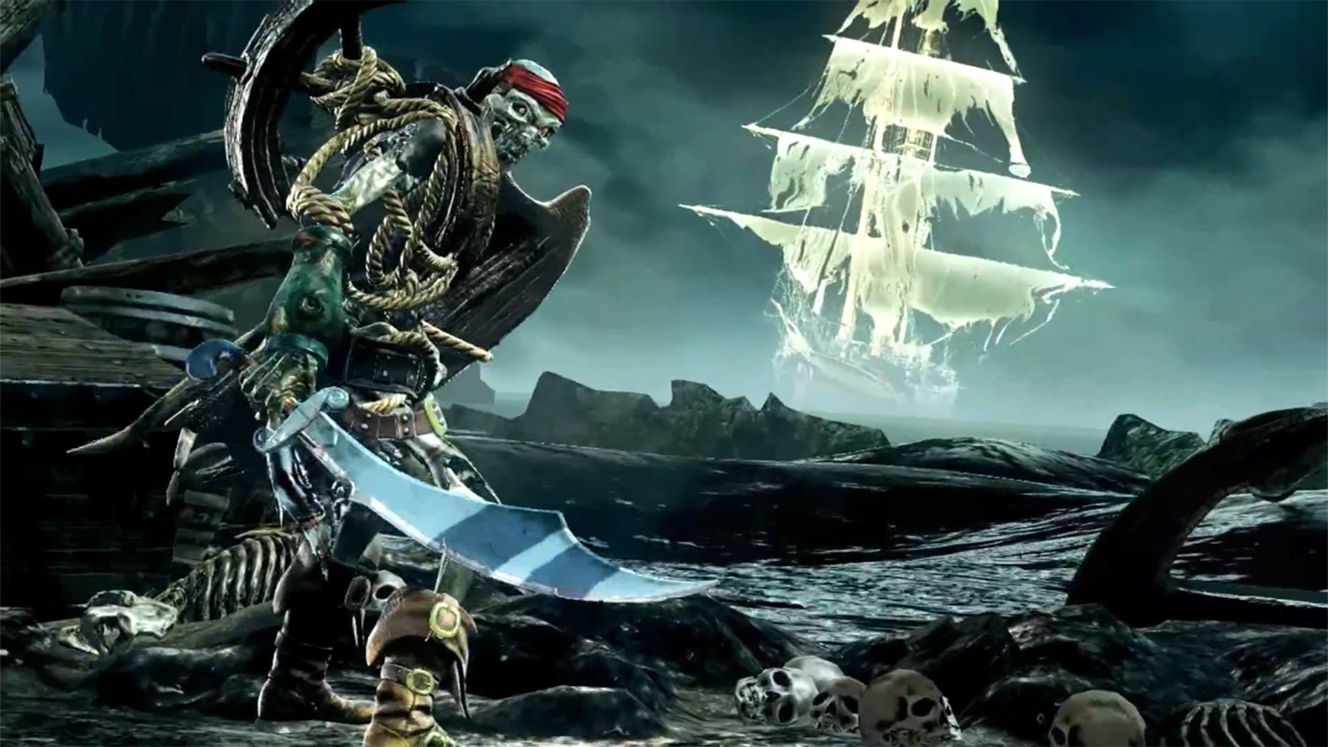 My opponent is a featureless alien with a really scrunched up, twisted face that could open to reveal a single eye. It was kinda freaky actually but didn't phase me at the time considering I was a centuries-old maniacal skeleton ghost pirate.
